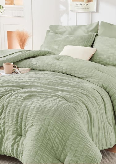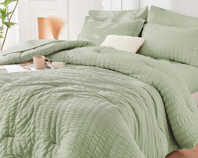 The HYMOKEGE Seersucker Comforter Set brings soft texture and lightweight comfort to your bedroom with its airy seersucker design and cozy all‑season feel. Crafted from skin‑friendly microfiber with plush filling, it adds a fresh, modern look while keeping you comfortably warm year‑round. Perfect for anyone who loves simple, elegant bedding that feels as good as it looks.